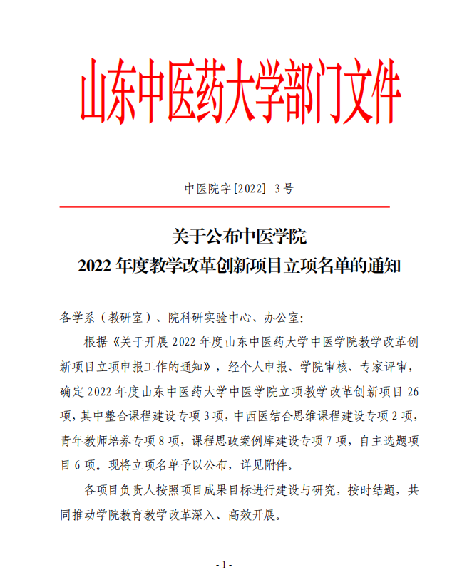 中医院字[2022] 3号--关于公布2022年度教学改革创新项目立项名单的通知.pdf