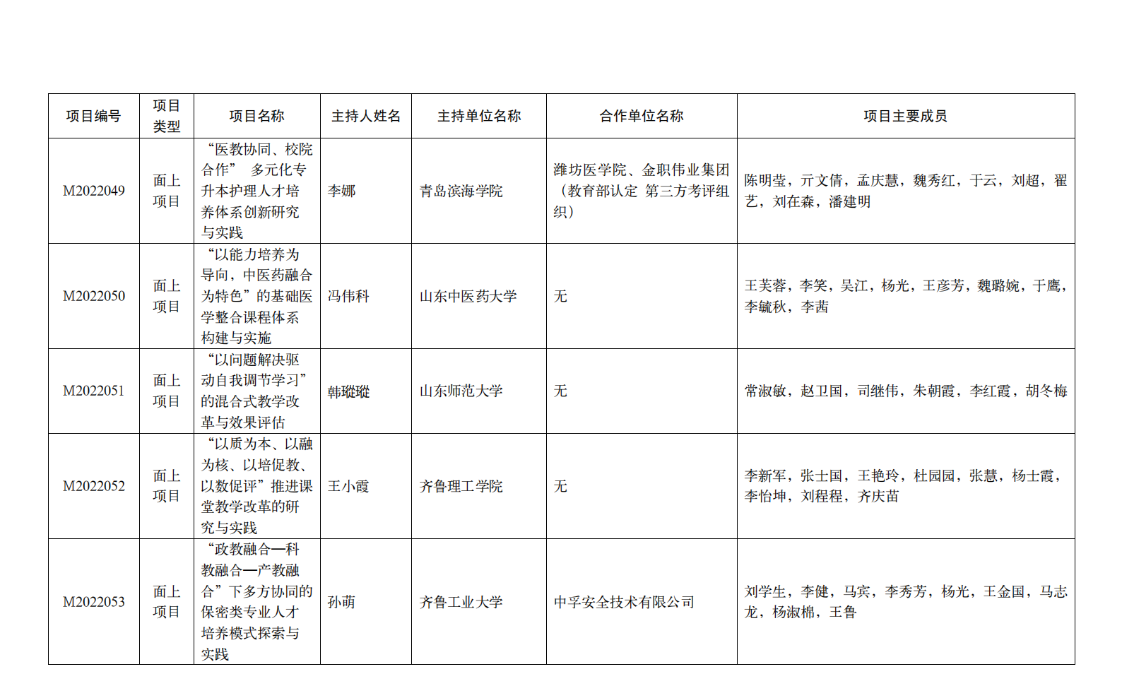 近日,山东省教育厅下发了《关于公布2022年本科教学改革研究项目立项名单的通知》(鲁教高函〔2022〕37号),经公司推荐、专家评审、社会公示等程序,确定立项重大专项 7 项、重点项目 338 项、面上项目 371 项。其中,公司任健教授申报的“基于信息融合的中医学专业‘双向三阶四段’学习发展评价体系的创新与实践”获批重点项目;冯伟科副教授申报的“‘以能力培养为导向,中医药融合为特色’的基础医学整合课程体系构建与实施”获批面上项目。