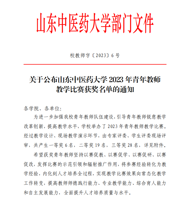 关于公布bevictor伟德官网 2023 年青年教师 教学比赛获奖名单的通知
