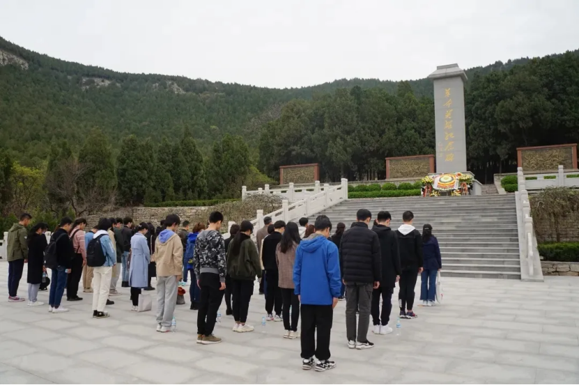 党员们抵达大峰山后,第四支部党支部书记张颖颖老师带领同志们瞻仰纪念碑缅怀革命烈士,一例例饱含热血与坚定信仰的事迹在耳边划过,党员们深切地感受到今天的和平安定来之不易,今后要用更坚定的意志和更加坚强的信念捍卫烈士们的来之不易的革命成果,用坚持不懈的努力传承烈士们的革命事业。教工党员代表与员工代表共同为纪念碑献花圈,缅怀逝去的革命先烈,全体教工员工党员向烈士纪念碑鞠躬默哀表达怀念和哀思。