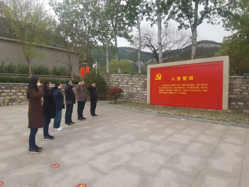 在重温入党誓词活动中,张庆祥老师带领大家面向党旗宣誓,那铿锵有力的誓词激荡在每位党员的心中,唤醒的是为国奉献的使命感。随后,党员们参观了大峰山革命根据地纪念馆,深切感受了革命年代的飘零战火,重温了先烈的革命历程,进行了一次思想上的洗礼。