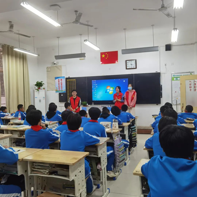 下午15:30,由工作人员带领志愿者们乘坐公交车到达目的地后,各组志愿者师哥师姐立即前往各班进行中医药以及卫生知识方面的宣讲。每班均设有三位志愿者,师哥师姐们采用新颖的讲课方式,为同学们讲述中医药知识。此次的授课课题为“霜降养生知多少,中医秋冬收藏法”。志愿者们积极认真备课,制作精美课件,以通俗易懂的形式向同学们介绍霜降养生知识,普及中医药文化。一张张多姿多彩的ppt ,一次次积极的互动,加上志愿者师哥师姐们有趣的宣讲与同学们默契的配合,让短短的一节课妙趣横生。