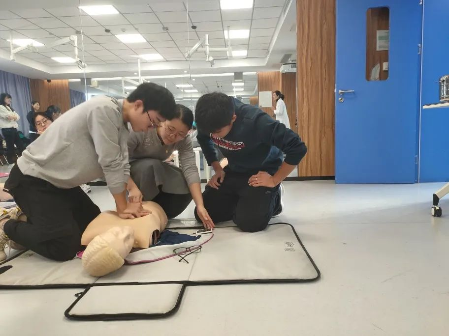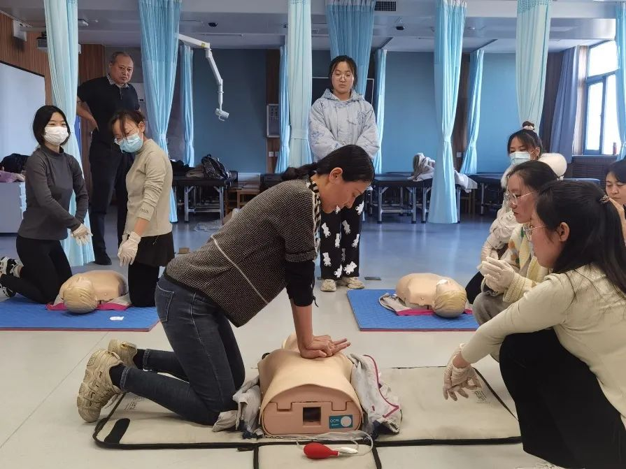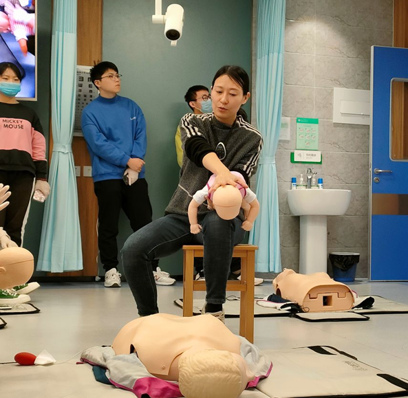 带教老师首先对心肺复苏术(CPR)的基本原理及操作步骤进行了讲解示范。心肺复苏术是针对呼吸心跳停止的急症危重病人所采取的关键抢救措施,目的在于恢复患者自主呼吸和自主循环。同学们积极踊跃参与练习。第二部分是海姆立克急救法的培训。海姆立克急救法主要针对异物堵塞呼吸道致患者无法呼吸的突发意外情况,通过不断冲击上腹部的操作使膈肌瞬间抬高,迫使肺内气流将气道内的异物冲击出来,又被称为“生命的拥抱”。老师详细讲解了适用于成人及一岁以上儿童的站位、卧位及自救的手法。此次活动中师生互动频繁,员工讨论热烈,课堂气氛活跃,实践操作性强。通过本次支部共建活动,员工掌握了以上两种急救方法,通过正确的救助方法及时有效提高救治率;同时进一步培养了员工们尊重生命、敬畏生命的大医情怀及积极救助、为民服务的精诚意识。本次活动取得圆满成功。