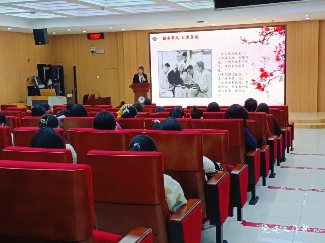 红医精神是中国革命精神系谱中的一员,价值内涵包括政治坚定、对党忠诚的政治品格,救死扶伤、大爱无疆的价值取向,埋头苦干、无私奉献的工作作风。红医精神在中华民族走向伟大复兴的今天仍具有极强的现实意义。宣讲人号召青年老员工要继承和发扬红医精神,在点滴行动中推动中医药事业建设,打造好中医药文化名片,为中华民族伟大复兴贡献一己之力。