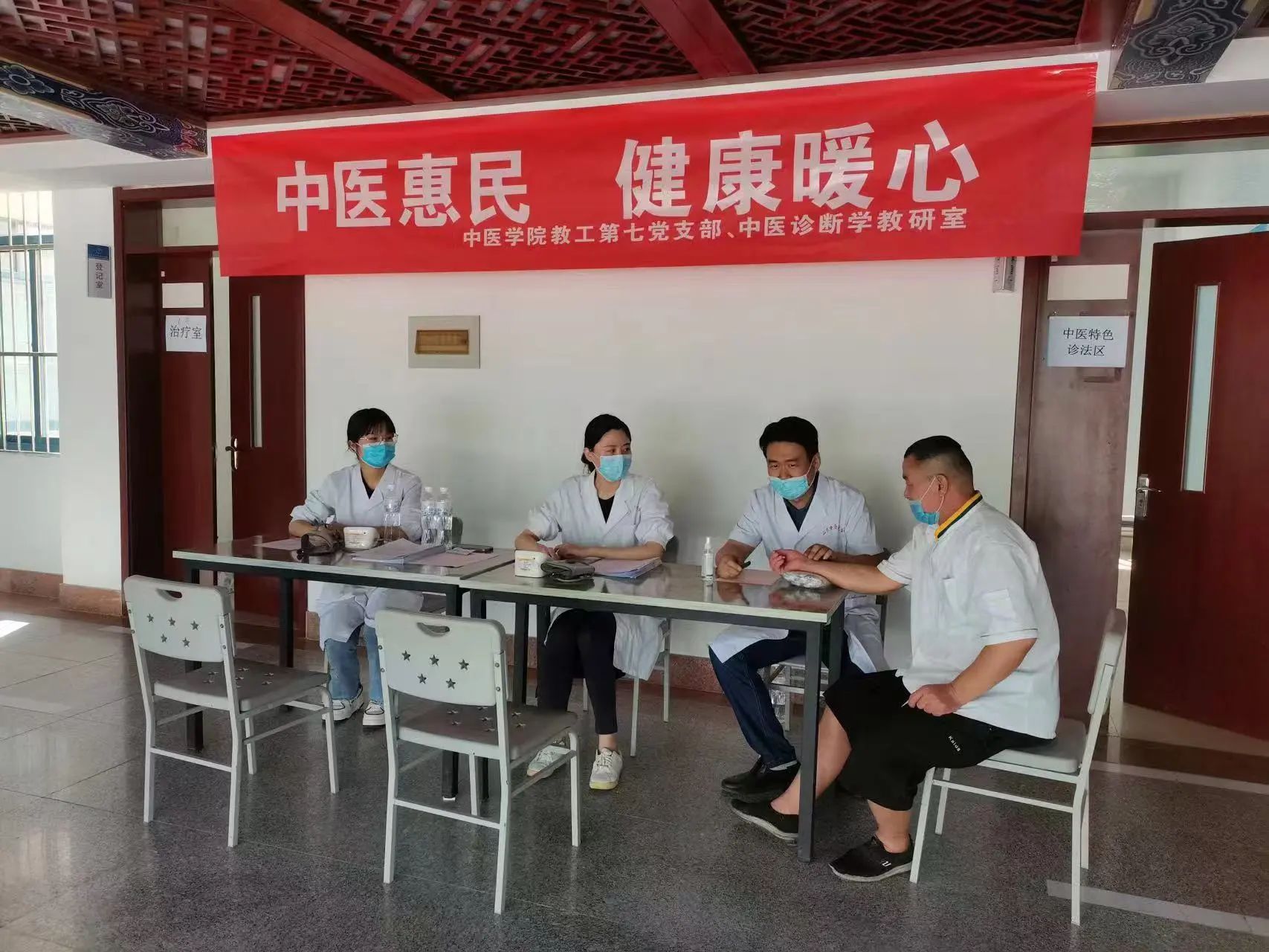 “三联推进”提升工作质效。支部采取“组织联建,推进支部发展”“教学联动,推进党员提升”“医教联合,推进服务提质”。支部与其他支部施行组织联建常态化,实现互相监督、互相促进。同时针对支部党员全部为一线教师的特点,将教与学联动,充分发挥党员的先锋模范作用。支部党员作为“双师型教师”,积极参与“银发医疗服务队”“万名医护进乡村”“中医药文化进校园”等义诊、教育活动,利用自身的技能和专业知识为社会做出贡献。