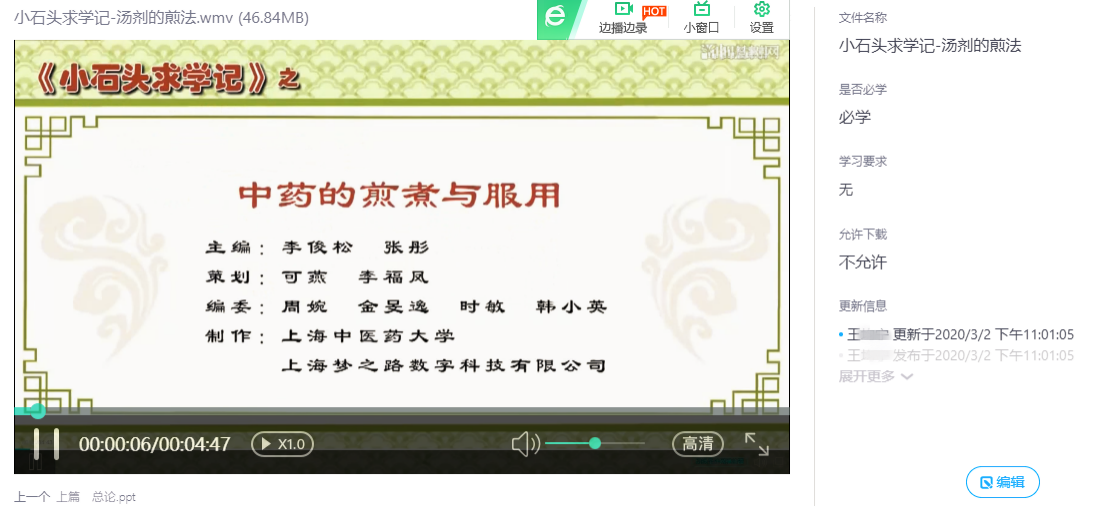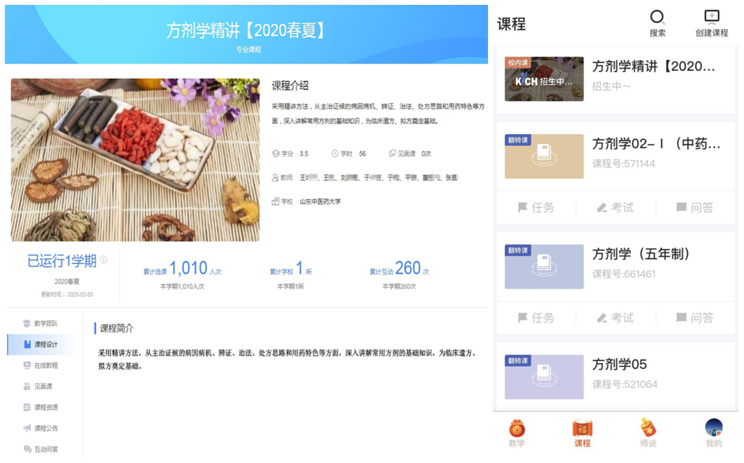 为保障线上教学质量、给员工提供可反复学习的课程资源,方剂学教研室在最短时间内成立了教学团队团队,围绕《方剂学》教学的重点和难点内容,按照教材顺序进行系统总结整理,上传智慧树平台,建成了校内SPOC课程,并且充分利用对分易等辅助教学平台,建立QQ群及微信群,用于发布教学信息以及师生沟通答疑,确保线上教学工作顺利进行。