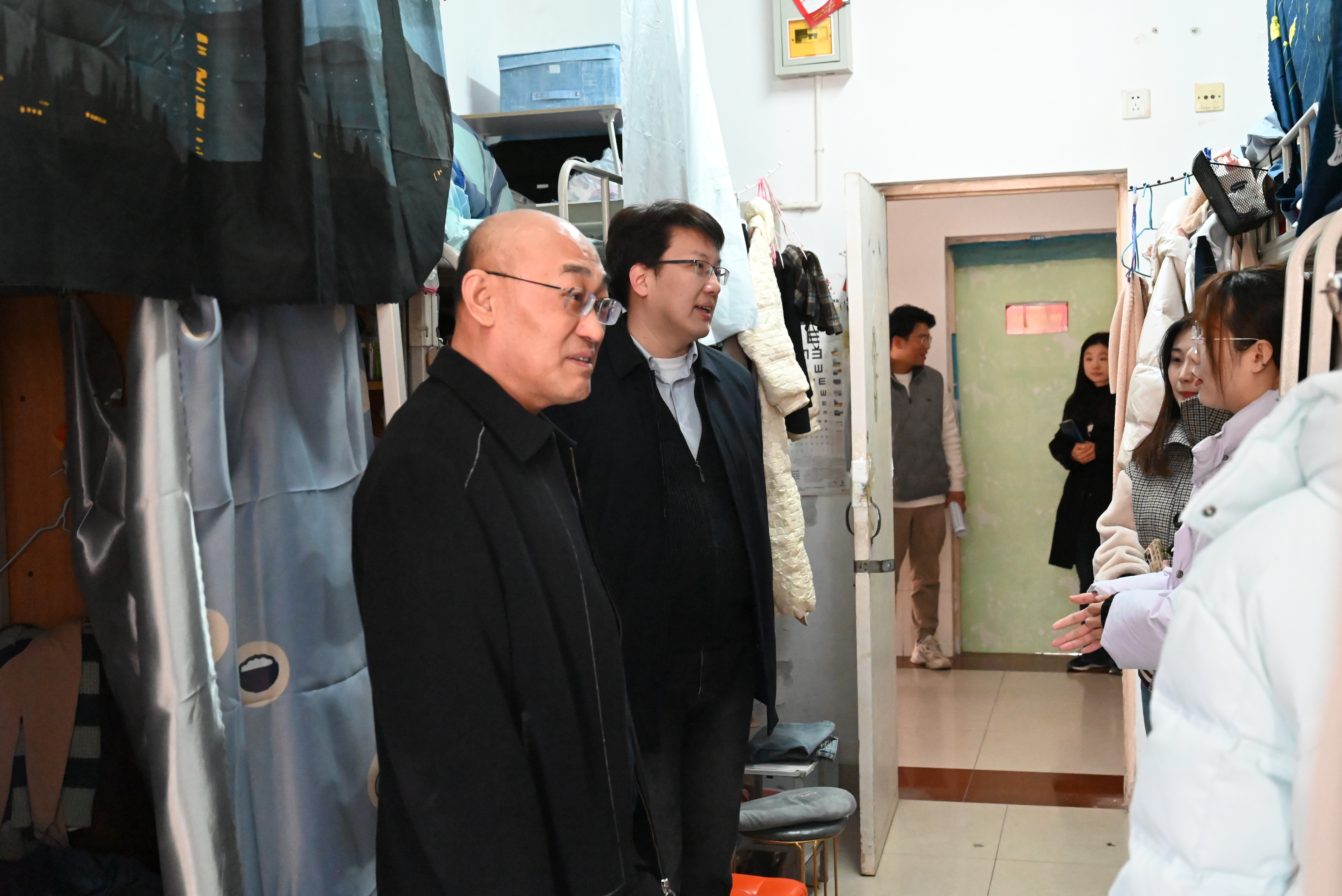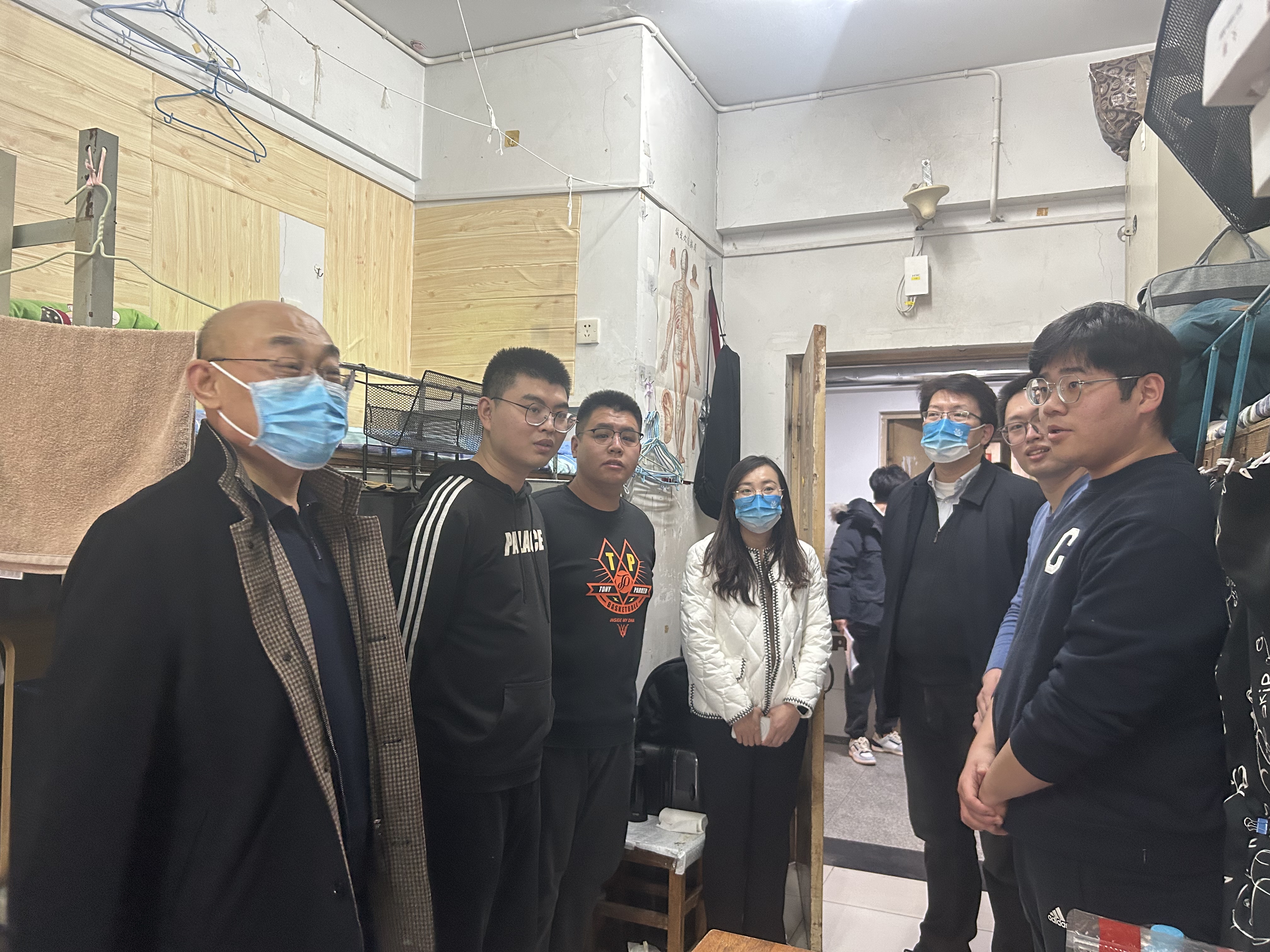在长清校区,姜锡斌针对宿舍卫生和可能存在的安全隐患等细节对同学们提出了建议和要求,并与员工进行深入交流,了解员工的思想动态、关怀员工学习生活状况。叮嘱员工要科学安排日常生活,保持良好的宿舍卫生,坚持劳逸结合、注重身体锻炼,提高学习效率,加强与辅导员的沟通交流。