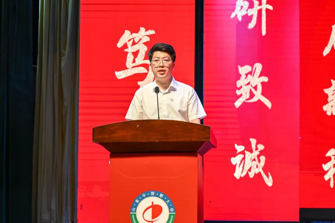 在校生代表刘长清以自身学习中医从懵懂到成长的过程和感悟,与师弟师妹们以心交“新”,薪火相传。