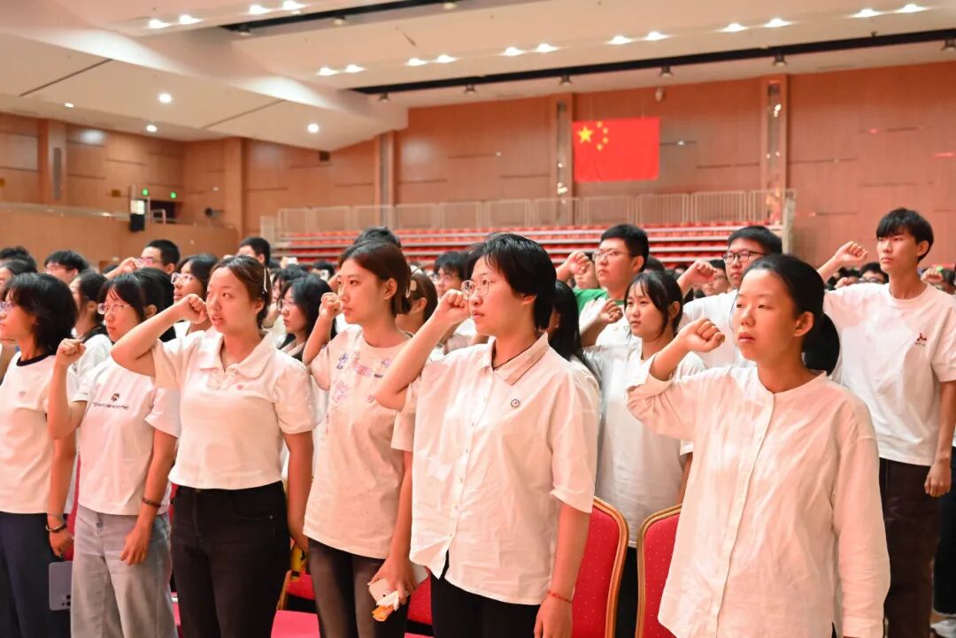 典礼最后,全体新生庄严宣誓,共同举起右拳齐颂《大医精诚》。