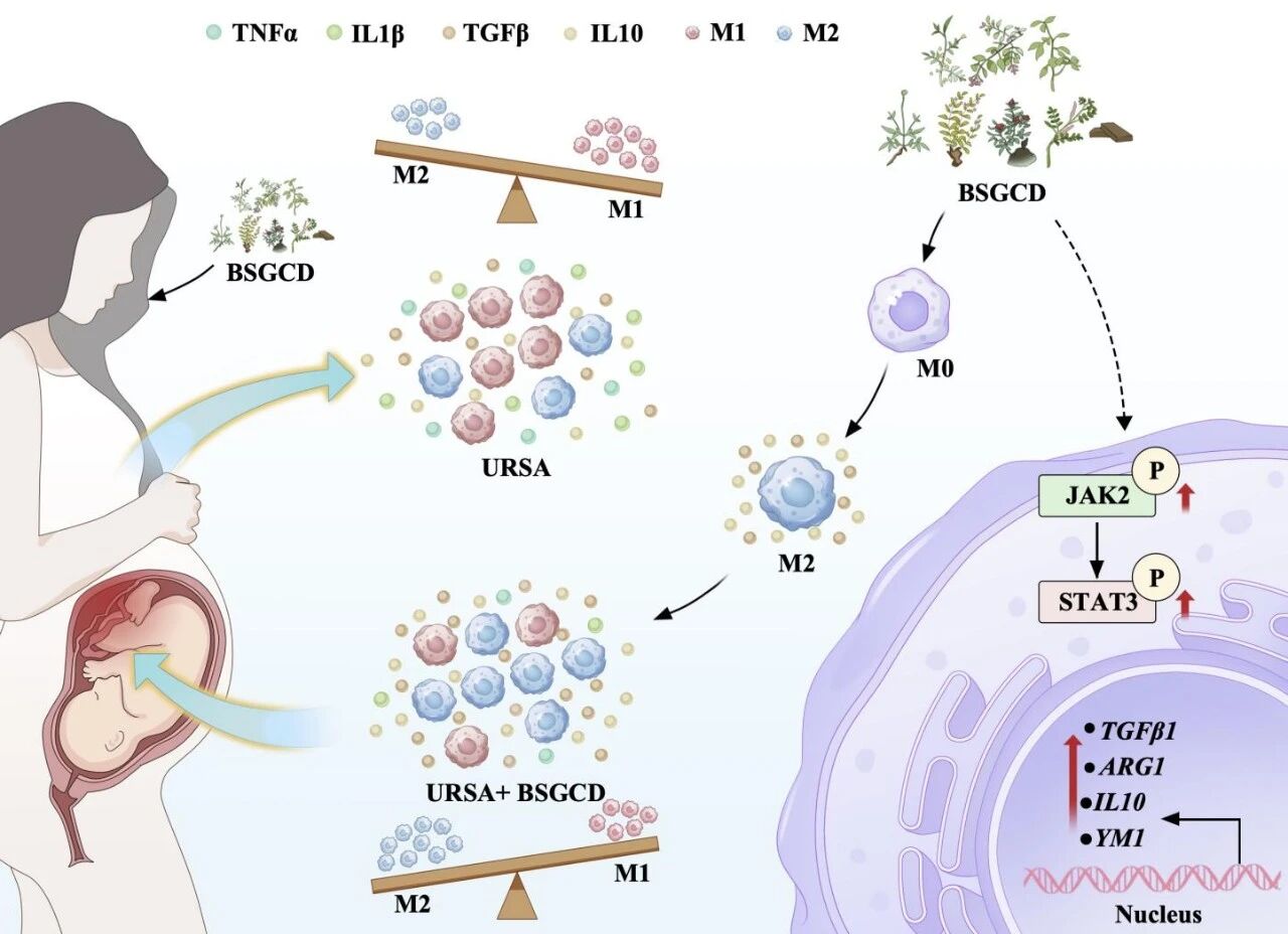 近日,公司中医学部李霞教授团队在中医药免疫调控研究领域再创佳绩,在国际医学领域杂志Phytomedicine(中科院1区Top,IF:8.3)发表题为“Bushen Guchong decoction facilitates M2 polarization through JAK2/STAT3 for URSA treatment”的研究论文。该研究系统揭示了临床有效方剂补肾固冲汤(BSGCD)通过重塑母胎界面免疫耐受治疗原因不明复发性自然流产(URSA)的作用机制。中医学部刘泳琳硕士、青年教师刘鑫馗及朱肖肖博士为共同第一作者,李霞教授、张振副教授为共同通讯作者,bevictor伟德官网为第一作者和通讯单位。