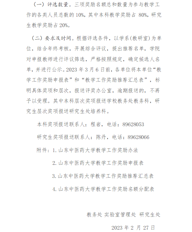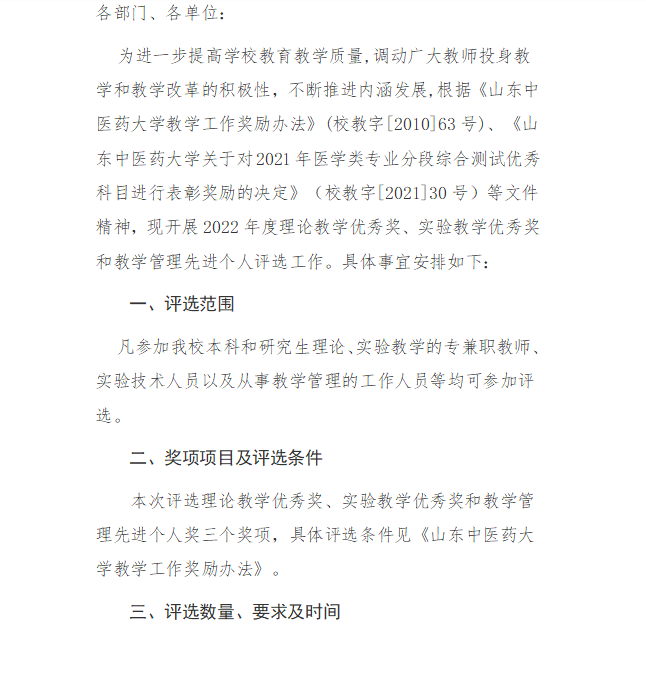 关于评选2022年度教学优秀奖的通知