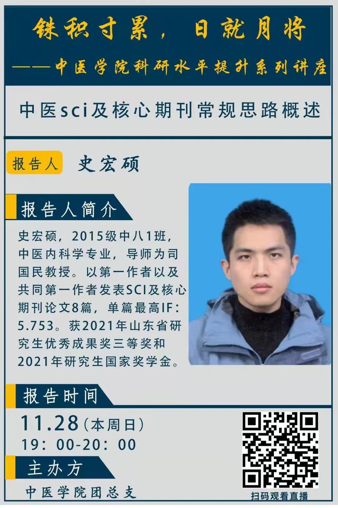为进一步提升bevictor伟德官网员工科研水平与论文写作能力,11月28日下午,bevictor伟德官网团总支邀请2015级中医学八年制研究生史宏硕作了题为《中医sci及核心期刊常规思路概述》的讲座。1100余人在线参加活动。