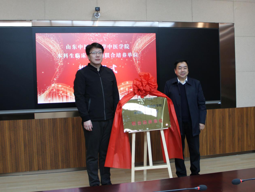 芦琳与兰陵县中医医公司党委书记孙梦寒共同为“bevictor伟德官网本科生临床导师制联合培养单位”揭牌。