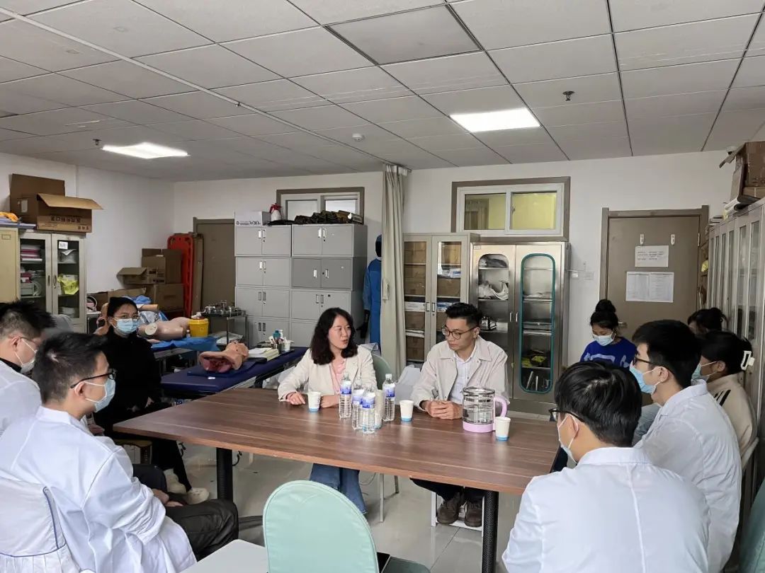 会后,芦琳与实习员工开展座谈并走访员工宿舍。了解同学们的实习教学建议以及在工作、生活中的需求,与同学们沟通交流考研、就业意向,并就员工反映的问题与实习单位领导进行交流。