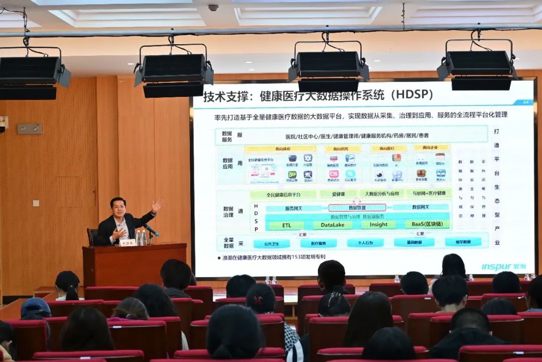 乔朕东从中西医临床医学专业员工的成长经历和自身求职创业经历出发,为中西医临床医学专业员工的学习、发展和就业等内容给出建议与指导,并着重强调了中西医临床医学作为一门融合学科所具有的发展方向多元化、专业前景时代化等特点和发展优势。同时从国家科技创新战略切入,结合浪潮集团在云计算、服务器等领域的全球领先地位,系统阐释了健康医疗大数据与人工智能技术的发展现状和应用场景,展望了“人机协同”的未来医疗核心范式,向同学们传达了“找准方向”“敢想敢干”“实事求是”“上下求索”的创新创业理念。