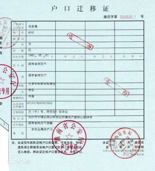 户口迁移证理解起来比较简单,指哪打哪,要迁到哪就打到哪的地址。但是有一件事特别重要,千万不要超期,一般来讲户口迁移证有效期1个月,1个月内一定要落下来。如果不落,你的户口就一直处于“迁转”状态,在迁出地和迁入地之间像个幽灵一样飘着,不仅什么也干不了,而且还容易变成黑户。所以,不要犯懒,别给自己和警察叔叔添麻烦。