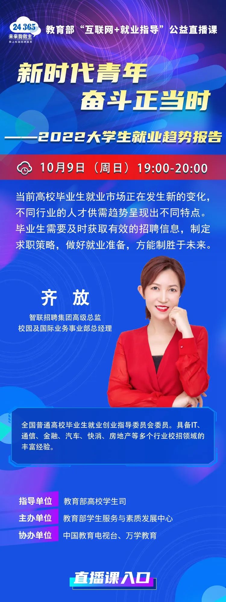 课程预告 | 教育部24365就业公益直播课:新时代青年 奋斗正当时——2022老员工就业趋势报告