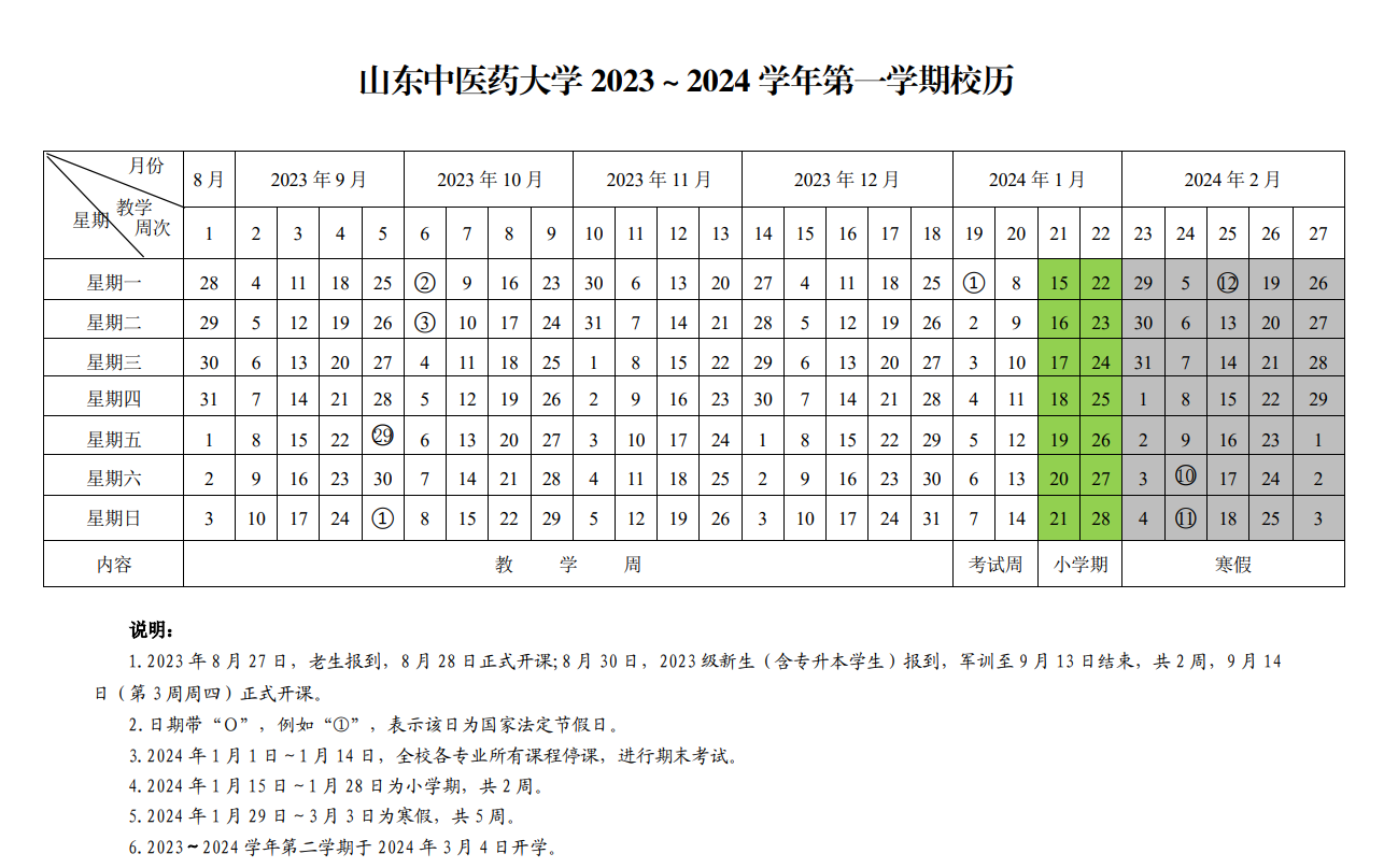 2023-2024学年第一学期校历