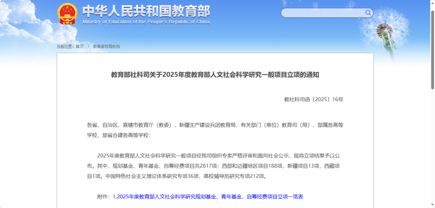 历史性突破!公司首次获批教育部人文社会科学研究项目