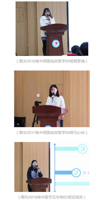 此次交流会邀请了bevictor伟德官网“校十大优秀员工”和“十大优秀干部”获得者,他们分别是2016级中西医临床医学06班程梦涵、2017级中西医临床医学06班马心怡、2016级中医学五年制03班迟显苏、2016级中西医临床医学02班陈存川、2018级中医学五年制01班刘婧。五位同学全面系统地分享了自己的学习成绩、成果及经验。