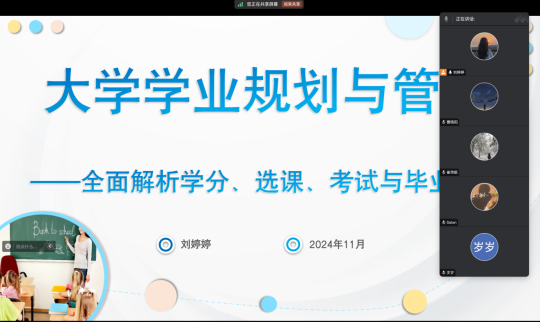 刘婷婷针对二段式教学阶段的员工特点,开展了“大学学业规划与管理”主题班会。她详细解读了学分制、选课规则、考试安排及毕业条件等相关政策,并特别强调了必修课与选修课的重要性。通过此次班会,员工们对大学学业规划有了更清晰的认识,为今后的学习生活奠定了坚实基础。