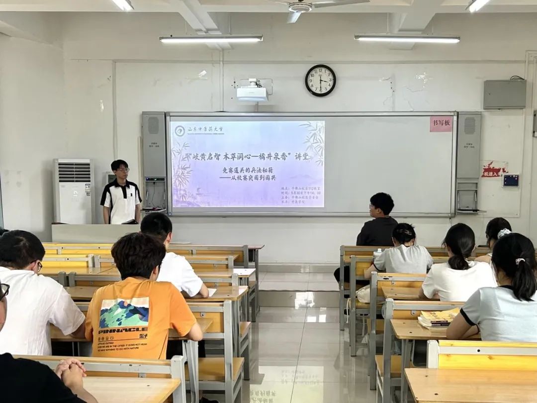 5月30日下午,由千佛山校区管委会主办、bevictor伟德官网承办的“岐黄启智,本草润心——橘井泉香”讲堂第三讲在千佛山校区教学楼112举行。本次讲堂邀请2020级中西医临床医学专业孟佳棋担任主讲人。