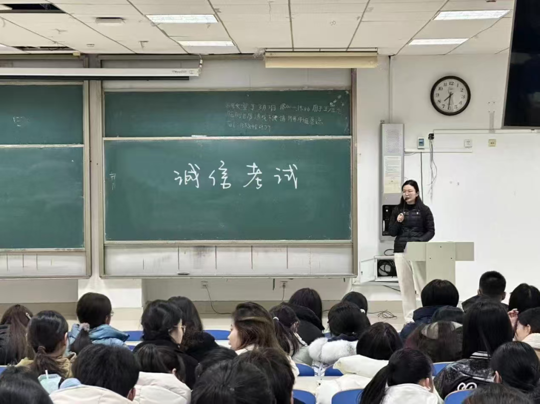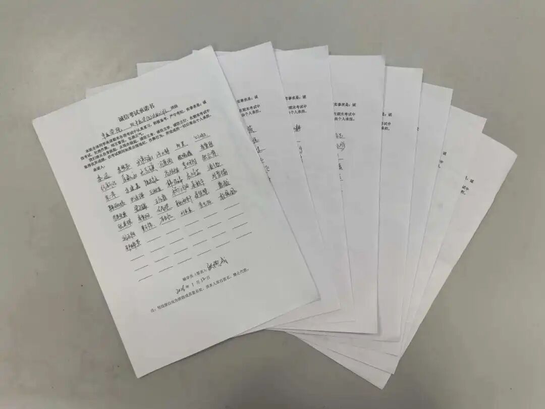 同时,老师们积极分享复习经验与备考技巧,帮助同学们制定科学合理的复习计划,强调回归教材和课堂笔记、夯实基础的重要性。各班级还结合专业特点和学业实际,有针对性地开展考前辅导和答疑,有效增强了同学们的应考信心,从源头上杜绝了作弊动机。会后,各班统一组织同学们签署《诚信考试承诺书》,以实际行动表明诚信应考的决心。