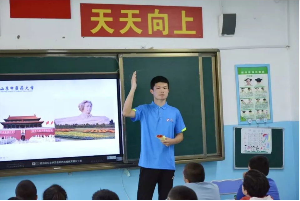 还记得支教第一天,我选择了最有把握的中医基础理论课作为我的开场课。走进教室,我看到的是一张张稚嫩的脸庞,他们天真活泼,眼神中充满了对知识的渴望。我本以为这节课能够顺利地进行下去,但事与愿违,孩子们薄弱的中医基础让我精心策划的课程在进行中遇到了困难。为了讲课的顺利开展,我不得不让自己的语言尽量做到生动有趣,同时尽可能从众所周知的知识出发,将枯燥乏味的中医药知识同多姿多彩的日常生活相结合,鼓励同学们勇敢表达。虽然后面的课堂氛围不再像刚开始那般乏味死寂,但是一天的课下来,疲惫的身体和彷佛被戈壁上细沙磨砺过的嗓子让我意识到原来讲课是对意志和身体的双重考验,身体上的不适让我一度感到忧虑和迷茫,甚至开始怀疑自己的选择是否正确。