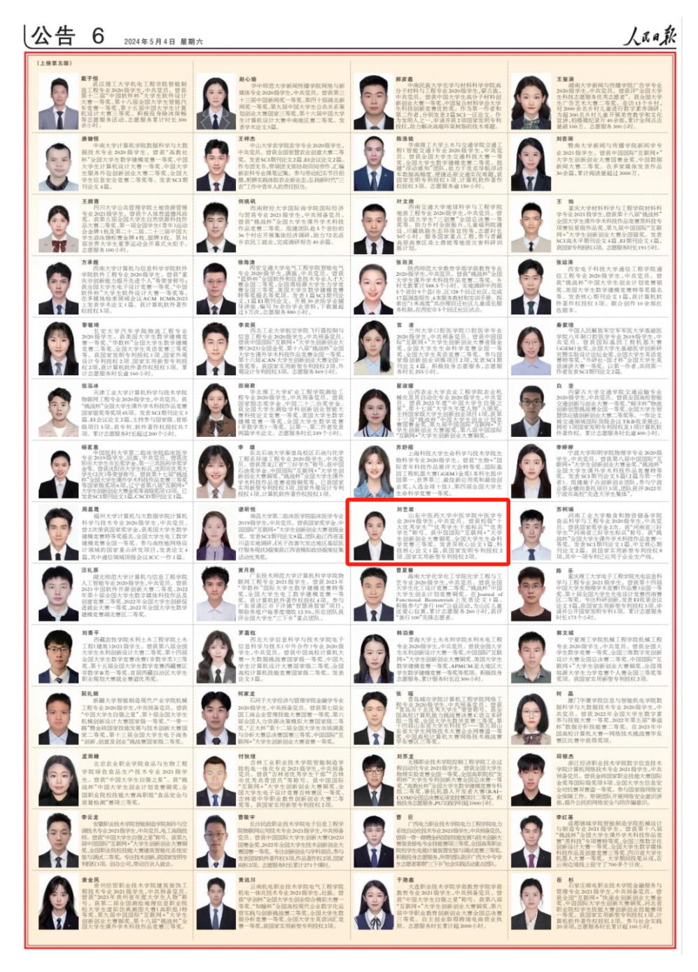 5月4日出版的《人民日报》,从全国6万名荣获2022—2023学年度国家奖学金的优秀本专科员工中选拔出100名员工作为本专科生国家奖学金获奖员工的优秀代表将他们的事迹予以刊登。其中,山东省共有包括公司刘艺旋在内的4名员工入选。