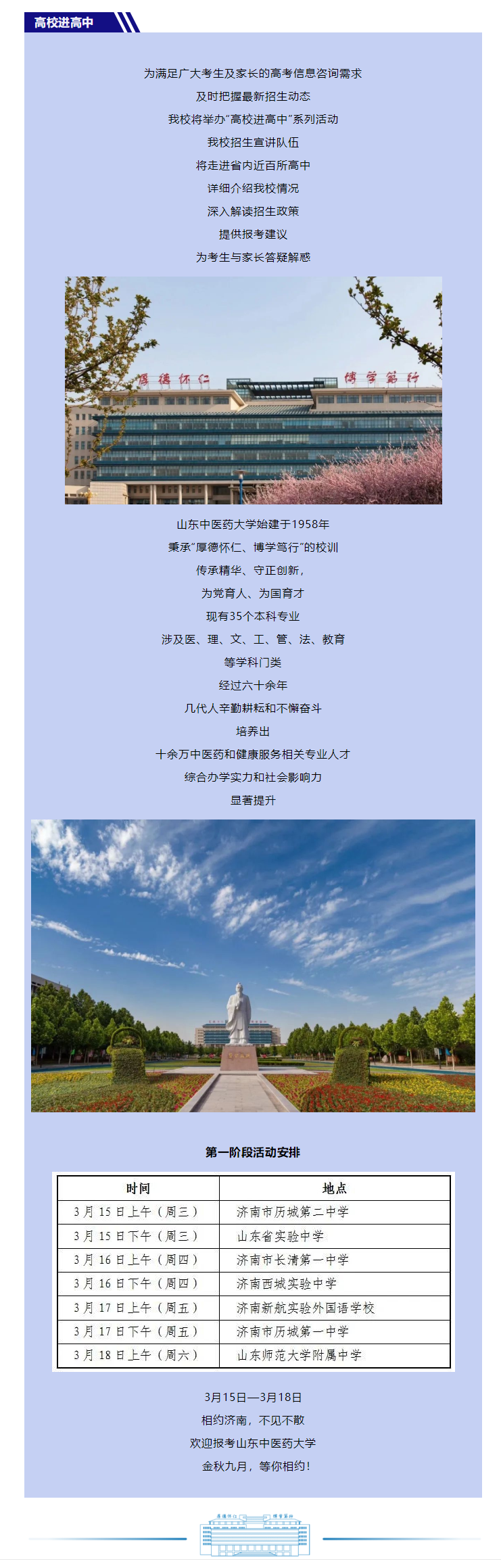 2023年“高校进高中”系列活动正式启动!| 第一阶段:济南站