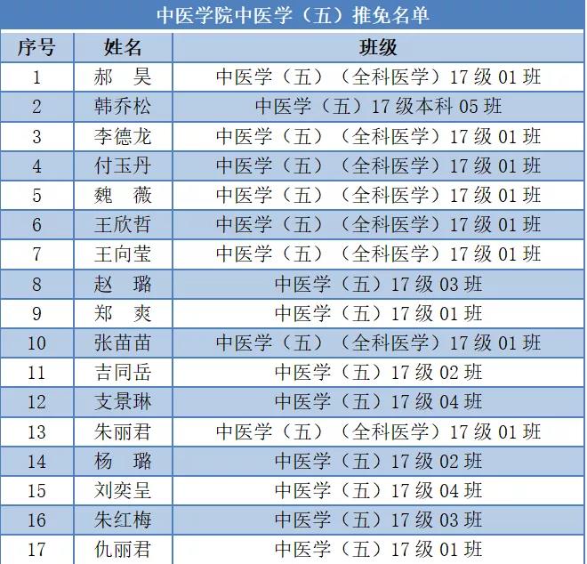 各院校推免招生工作现告一段落,让我们看看2017级中医学(五)的同学们的战绩如何?